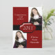 Cette invitation simple pourtant chique est une grande manière d'annoncer votre fête de remise des diplômes (de l'enfant). Si vous ou votre enfant recevez un diplôme du lycée ou de l'université, ces invitations sont la manière parfaite d'aller ! Caractéristiques de conception une conception de quatre rectangles sur l'avant. Deux des secteurs de rectangle sont des rouge foncé et les autres deux sont des secteurs pour que vous ajoutiez la photo du diplômé. Ajoutez deux de la même photo ou de deux photos différentes. Le choix est à vous ! À l'intérieur du rectangle de rouge les secteurs est texte dans la police de fantaisie blanche. Tout les texte peut être customisé pour adapter à vos besoins. À travers le centre de l'invitation est une bande noire avec un rouge brillant-comme le secteur de bouton. Ajoutez l'année d'obtention du diplôme à ce secteur ! Le verso de la double invitation rouge d'obtention du diplôme de photo est rouge foncé solide avec l'équilibre blanc autour de lui. Tout le texte est dans la même police blanche de fantaisie. Tout le texte est entièrement personnalisable ! Ces invitations chiques sont grandes pour le diplômé dont les couleurs de lycée ou d'université incluent rouge et noir ou rouge et blanc. Cette invitation également disponible dans d'autres couleurs !