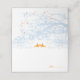 Modern and zen origami orange paper crane hanging from light blue silhouette bare branches with tangerine berries. An auspicious and romantic asian wedding themed design that is stylish, unique and classy.