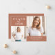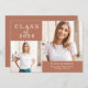 This simple and stylish graduation announcement card features two of your favourite personal photos of the class of 2025 graduate, along with classic elegant text and script on a boho terracotta coloured background for a stunning minimalist look.