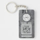 An elegant grey marble keychain, designed to make the QR barcodes aesthetically pleasing, without losing functionality. The keychain is two-sided, with a different QR field on each side. Each side has its own subtitle for clear labelling. Link to two different addresses, like one for payment and one for promotion, or just use the same link in both QR barcode fields (both sides of the keychain) for ease of use. There is a place to add your logo on the front, and another for business contact information on the back.