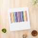 Geometric barcode design features two rainbows made of pairs of coloured stripes that correspond to UPC numbers. Getting my geek on, the numbers correspond to the letters in "rainbow" to make a double rainbow. Since barcodes are only 12 numbers long, I let the "r" be represented by the red start and middle stripes. The sequence starts on the left with red, orange, yellow, green, blue, indigo, and violet. Two stripes of red serve as a divider in the middle and then the colours go from violet back to red for a balanced look.