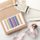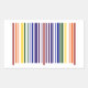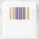 Geometric barcode design features two rainbows made of pairs of coloured stripes that correspond to UPC numbers. Getting my geek on, the numbers correspond to the letters in "rainbow" to make a double rainbow. Since barcodes are only 12 numbers long, I let the "r" be represented by the red start and middle stripes. The sequence starts on the left with red, orange, yellow, green, blue, indigo, and violet. Two stripes of red serve as a divider in the middle and then the colours go from violet back to red for a balanced look.