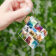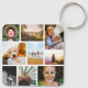 White framed personalized 18 photo collage template rounded corners metal keychain.