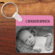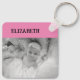 Double sided 2 photos add names pink keychain