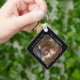 Double sided 2 photos name black grey keychain