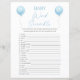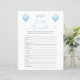 Double Sided Blue Balloon Baby Shower Game Card