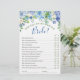 DOUBLE SIDED Blue Hydrangea Bridal Shower Game