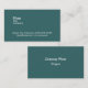 double sided business card - white on teal front includes contact info, name and title back includes company name and slogan