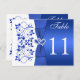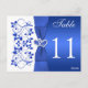 This romantic cobalt or royal blue and white floral double-sided table number post card has a blue PRINTED ribbon and bow with a pair of PRINTED diamond jewel and blue FAUX glitter joined hearts on it that matches the wedding invitation shown below. You must customize the card for EACH table number that you need, by changing the "11" to each number you need, adding it to your cart, and then repeating the process until you have the correct number of individual cards in your cart. If you have any questions, email niteowlstudio@gmail.com.