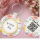 This custom keychain is a fusion of style and functionality, featuring your unique logo on one side or both, creating a stunning visual impact with the watercolor floral touch. The QR code on the other side (you can add brand name and all your infos) leads to valuable digital content, making it perfect for branding and marketing purposes. Crafted with precision, this keychain is a versatile accessory that showcases your brand elegantly. Personalize it today for a distinctive and memorable touch. You can replace the logo with a text or picture of your own )