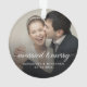 Commemorate your first holiday season as newlyweds with this elegant “Married & Merry” photo ornament. Customize with your favorite wedding or engagement photo, your names, and your special date to create a meaningful keepsake that will shine on your tree year after year. Designed with a romantic script overlay and a warm, festive look—perfect for newlyweds, couples, or as a thoughtful holiday gift. Both sides have the print.