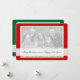 Double sided photo Christmas cards with two images. Green and red colours with cute rounded corners. Make your own 2 sided Merry Xmas cards with beautiful pictures of your family and kids. Includes transparent overlay for your personalized seasons greeting and Happy Holiday wishes. Elegant stylish typography. A custom cut out border shape is optional. Change the quantity to get the cheapest price per greeting card.