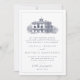 Impress your guests with this elegant double sided wedding invitation by JessicaAmber. This classic card features a vintage illustration of a Italian villa, which you can replace with an image of the destination where you will be married (transparent or white background preferred). Elegant dark blue lettering displays the bride and groom names, and details of the wedding, including the location, date and time.