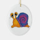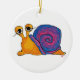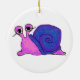 This round ornament has two snail designs on it: on one side, the snail has a golden body with a blue and pink shell; on the reverse, the snail has a pink body with a blue and purple shell. With their intriguingly large eyes, these snails will delight both children and children trapped in adult bodies. A unique addition to your holiday decorations and a gift for any nature-lover or science teacher.