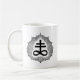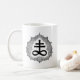 Appréciez votre boisson de choix avec le double noir classique sur la tasse blanche ornée par Sigil de soufre de Magus Gilmore blanc.