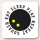 Double yellow dot squash ball funny pastic coaster for home or bar. Custom square coasters with funny quote or personalized text optionally. Eat Sleep Play Repeat! Fun Birthday gift idea for squash lover, fan, player, sports coach, trainer, friend, colleague, coworker, boss etc. Also great for party, teams, clubs, groups, competitions, leagues, raquetball etc.