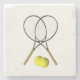 Crossed tennis rackets with two tennis balls beneath them . The ultimate tennis sport design.