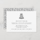 Continuez la fête ! Les encarts d'invitation à la réception de mariage en noir et blanc chic présentent une illustration de gâteau de mariage à plusieurs étages en haut, avec l'heure, le lieu et les détails supplémentaires de votre réception en dessous. Le verso des cartes présente un motif de vigne et de bourgeons botaniques en noir et blanc assortis.