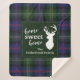 Cute home sweet home couverture de Noël vous pouvez facilement customiser en cliquant sur le bouton "Personnaliser", Avec silhouette de cerf et clan tartan Sutherland en vert, et chèque violet. Parfait pour vos nuits douillettes pendant les vacances. Fait un grand cadeau