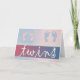 Empreintes roses et bleues contre un arrière - plan pastel doux avec des jumeaux en police amusante. Ajoutez facilement un message d'invitation à la douche ou de nouvelles photos de faire-part à l'intérieur. Voir des centaines de timbres et cartes postales pour bébé, monogramme et invitation.