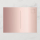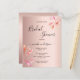 Une invitation simple et branchée à la douche nuptiale en or rose et rose. Un faux métal d'or rose, à l'aspect feuille arrière - plan décoré de sprigs et feuillage de couleur rose botanique et rose. Un grand script à main moderne, typographie avec le texte : Fête des mariées. Personnalisez et ajoutez le nom de la mariée et les détails du parti. Texte de couleur noire. Le nom est écrit avec des swashes. Pour que les swashes ne suppriment que le nom de l'échantillon, laissez les espaces ou émoticônes devant et après le nom. Retour : arrière - plan rose couleur or. Conseil : Si vous ne voulez pas qu'il ressemble à une carte postale, cliquez sur customiser, allez à l'arrière et retirez le séparateur et le timbre postal.