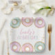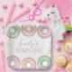 Cute Doughnut Birthday personalized paper plates. Our hand drawn pink, purple and aqua doughnuts with faux gold glitter and faux gold flakes are super cute and make this the perfect theme for your little ones Doughnut Grow Up 1st birthday party.