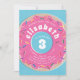 A whimsical kid's birthday party invitation created in the style of a vintage risograph print. The playful text is placed on top of a large doughnut illustration and surrounded by an array of colourful, rainbow sprinkles. The back of the card features a coordinating sprinkle pattern. Although it was created for a doughnut party, it would also be perfect for a summertime pool party!