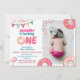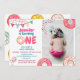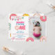 This sweet birthday invitation Sweet One personalized with you photo features my hand drawn doughnuts in bright colours with sprinkle confetti.