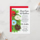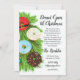 Invitation magnifiquement illustrée avec des donuts, des cannes à sucre, et des branches de pin sur un fond texturé enneigé.