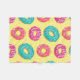 This doughnut design features a variety of pink, blue and yellow colours.