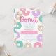 Doughnut themed kid's birthday party invitation in sweet pastel colours with gold glitter accents