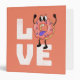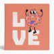 Grunge retro style illustration with white "Love" test design and colourful cute doughnut mascot decoration