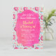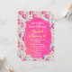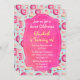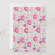 A sweet and delicious birthday party invitation for girls of all ages. The pattern background is a yummy illustration with glazed pink doughnuts with sprinkles. Mouth watering cupcakes in pink and blue with rosettes and strawberries on top. Some pastel pink french pastry macarons and little pink candy buttons also decorate this pattern full of sweet treats. A hot pink fancy frame in the centre has all your party details in easy legible writing. Personalize with all your party details.