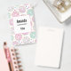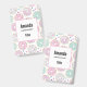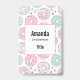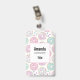 Name tag with a deliciously fun pattern. Illustration of pastel pink and green doughnuts with sprinkles and icing.