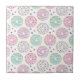 Ceramic tile with a deliciously fun pattern. Illustration of pastel pink and green doughnuts with sprinkles and icing.