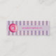 A delicious and sweet skinny business card to advertise your website or other info. With a yummy illustration of a pink frosted doughnut with colourful sprinkles. The background is a vintage style background with pastel purple vertical stripes and a light purple horizontal stripe across the centre to enter your text, for easy legible reading. Has a cute and whimsical flair.