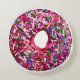 Fresh chocolate covered doughnut with coloured sprinkles in a graphic design displayed on both sides of the pillow. A delicious doughnut treat to decorate with that's perfect for a kids room, dorm room, or any room. This delicious pillow can be used as a home accent or home decor piece to add something sweet.