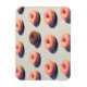 This design features a chocolate doughnut amongst a big group of pink doughnuts.