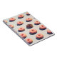 This design features a chocolate doughnut amongst a big group of pink doughnuts.