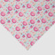 Yummy tissue paper with a delicious pattern design. Glazed pink doughnuts with sprinkles. Mouth watering cupcakes in pink and blue with rosettes and strawberries on top. Some pastel pink french pastry macarons and little pink candy buttons also decorate this pattern full of sweet treats.