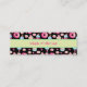 Skinny business cards to get your message out there. A yummy business website card with a delicious pattern design. Glazed pink doughnuts with sprinkles. Mouth watering cupcakes in pink and blue with rosettes and strawberries on top. Some pastel pink french pastry macarons and little pink candy buttons also decorate this pattern full of sweet treats. Set on a black background makes these sweet treats pop. A yellow stripe with a green border stretches across the centre where you can enter your text with easy legible writing.