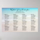 Poster pour les mariages assis lors d'une réception en bord de mer. Arrière - plan de sable de plage avec eau tropicale bleue le long du sommet. Ce tableau de 23 x 36 pouces contient du texte noir dans les deux scripts, pour un maximum de 12 numéros de table, et du texte imprimé pour les noms des invités. Noms mariés en haut dans une police élégante et moderne, écrit à la main avec une ou deux lignes pour la date et l'emplacement de la célébration. Chaque section de numéro de table peut accueillir jusqu'à huit personnes, ou moins selon les besoins. Les tableaux sont affichés horizontalement, mais il est facile de les modifier en changeant les chiffres à l'aide des modèles. Pour moins de tables, supprimez simplement les sections au besoin, en gardant l'aspect symétrique. Mettez le papier à niveau si vous le souhaitez.