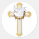 White dove, crown of thorns and gold and white Cross on gifts and apparel