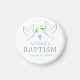 Dove and Christian cross baby boy baptism keepsake fridge magnet in blue and white. Elegant guest favours.