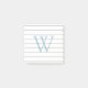 Minimalist post-its with thin lines and, at the centre, a pale blue monogram.