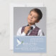 Un panneau bleu avec une bordure pointillée cache une colombe blanche avec une pointe de feuilles dans son bec. Une invitation parfaite pour toute célébration religieuse. Ajoutez simplement votre photo préférée. La carte est facile à customiser avec votre libellé, police, couleur de police et choix de six types de papier. Pas exactement ce que vous cherchez ? Tous nos produits peuvent être conçus sur mesure pour répondre à vos besoins sans frais supplémentaires. Communiquez avec nous à l'adresse askcottonlamb@gmail.com Coordonner les produits disponibles :