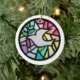 This colourful ornament is a print of an original design in hand cut paper. personalize the back with your own message or leave it blank. It makes a great Christmas gift alone or as part of a mixed or matching set.
