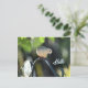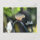 Say hello with a friendly backyard visitor! This photographic postcard features a curious mourning dove perched on a gracefully curved wrought iron garden hook, tilting its head toward the cheerful “Hello”. Sunlight makes the dove’s soft feathers glow and highlights the striking blue ring around its eye, set against a lively backdrop of sunlit green foliage and shadowed textures.
