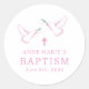 Dove and Christian cross baby girl baptism stickers in pink and white, ideal for guest favours.