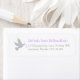 Double-sided simple grey dove with two purple ribbons wedding return reply address label for your guest to send back RSVP. Uniquely designed by Sarah Trett.